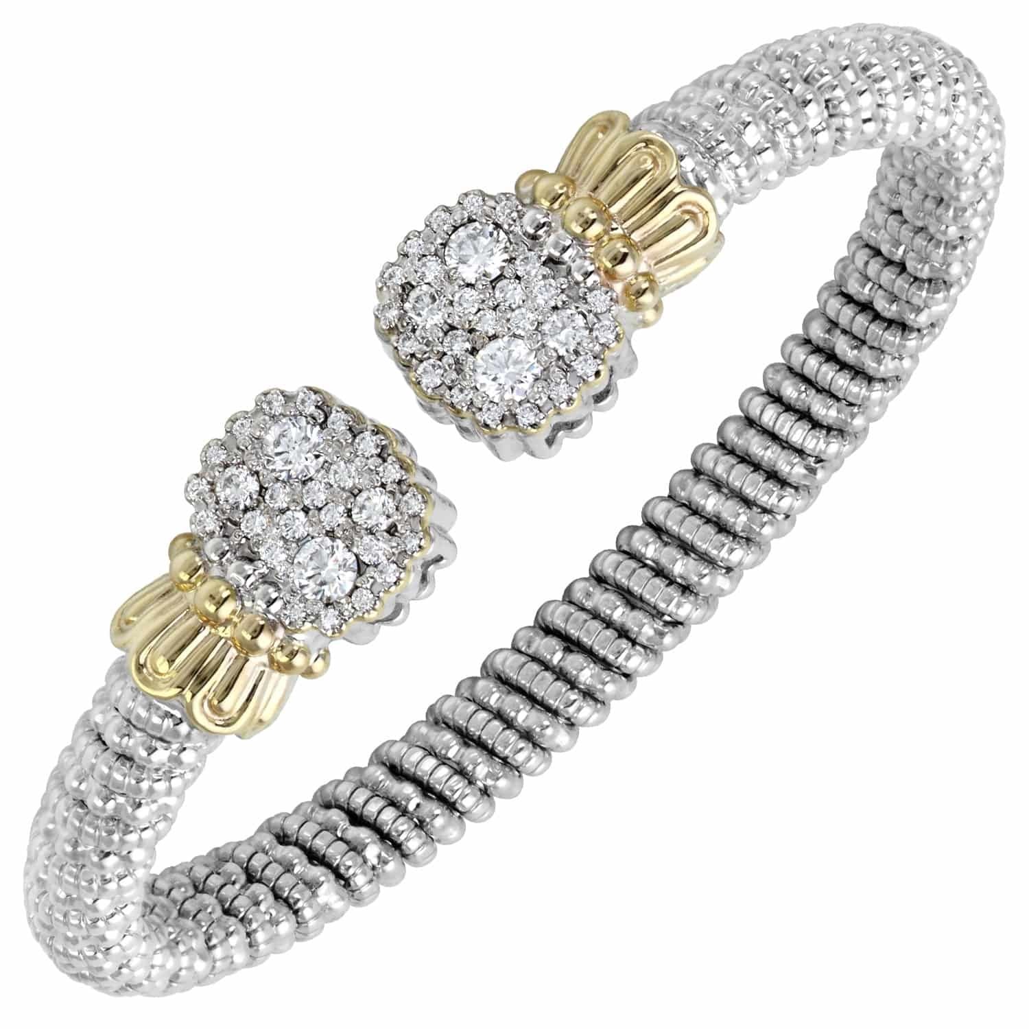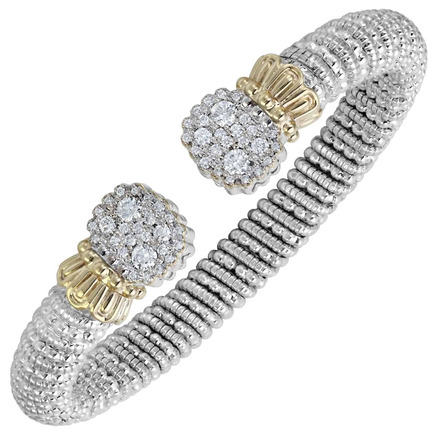 14K Gold and Sterling Silver, Diamond Stackable Cuff Bracelet | 6MM