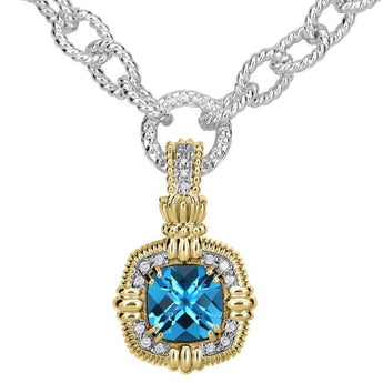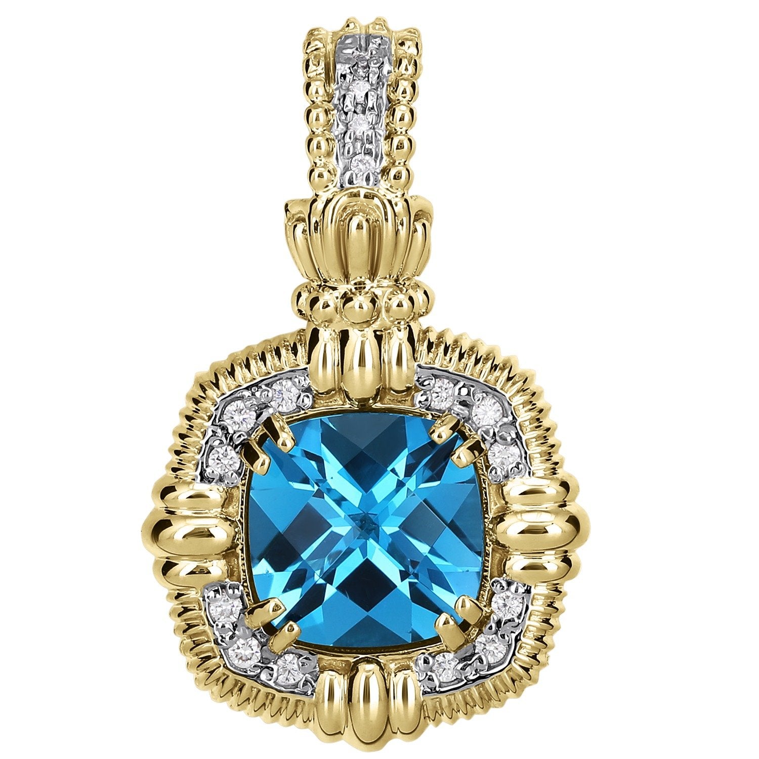 14K Gold and Sterling Silver, London Blue Topaz and Diamond Statement Pendant