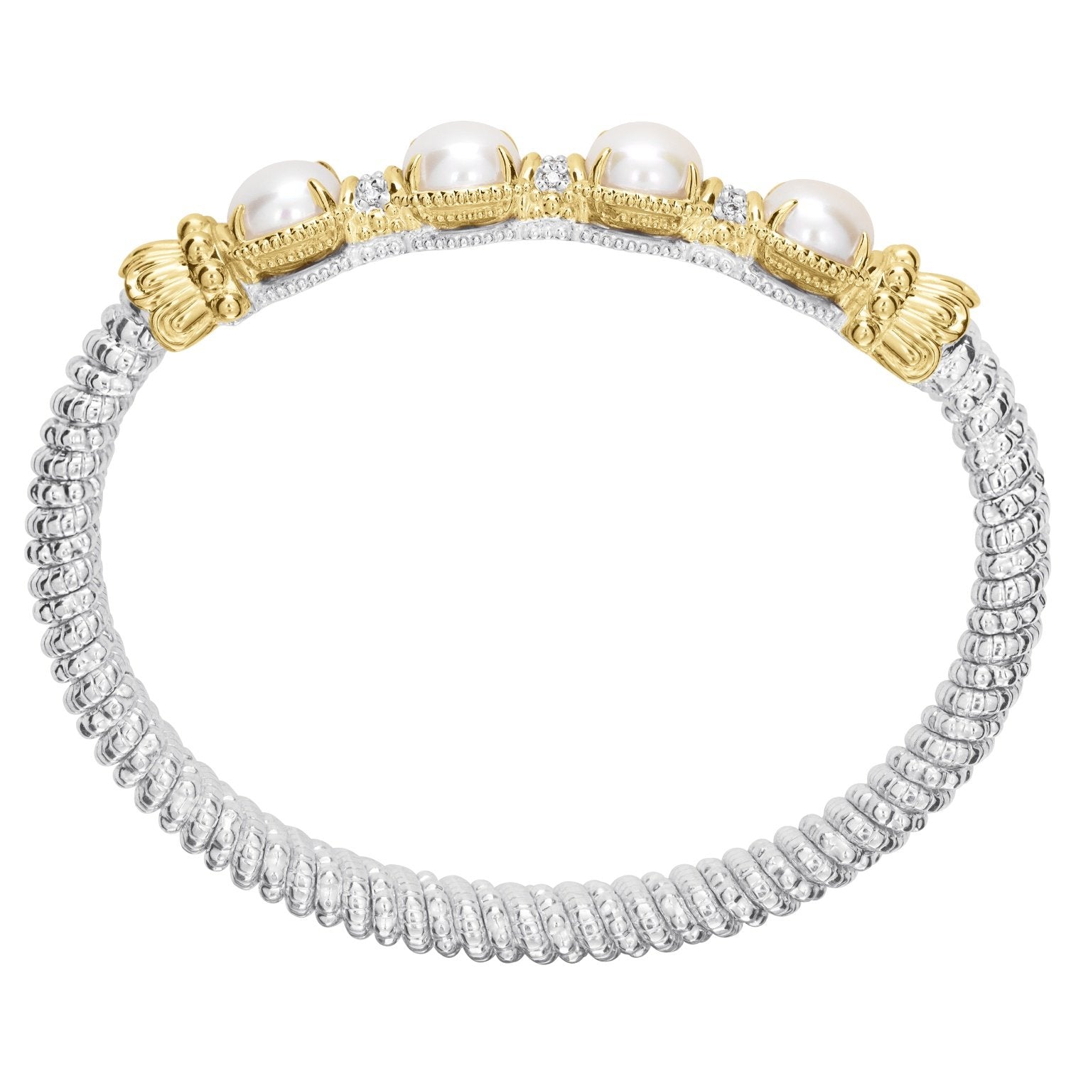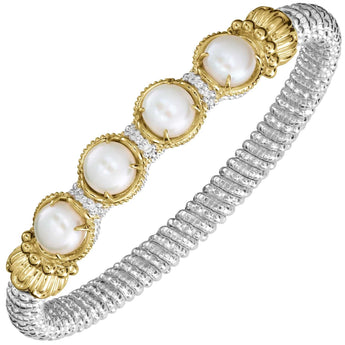 14K Gold and Sterling Silver, Pearl and Diamond Stackable Bracelet | 6MM