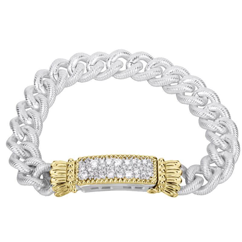 14K Gold and Sterling Silver, Multip-Pave Diamond Bar Chain Bracelet