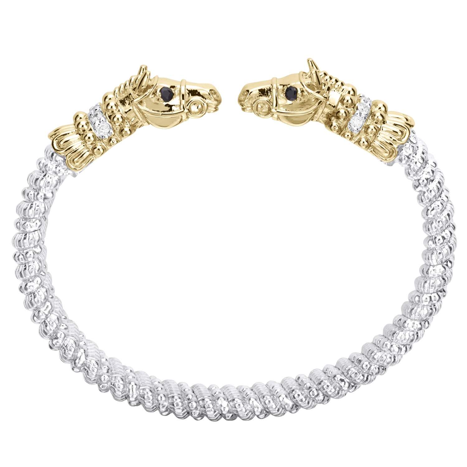 14K Gold and Sterling Silver, Black Onyx and Diamond, Equine Stackable Cuff Bracelet | 6MM
