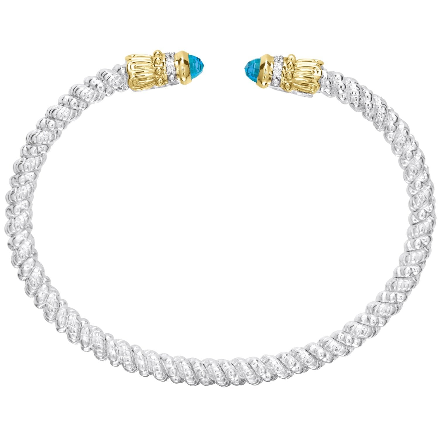 14K Gold and Sterling Silver, Blue Topaz and Diamond Stackable Cuff Bracelet