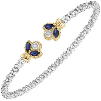 14K Gold and Sterling Silver, Diamond and Blue Sapphire Stackable Bracelet | 2MM