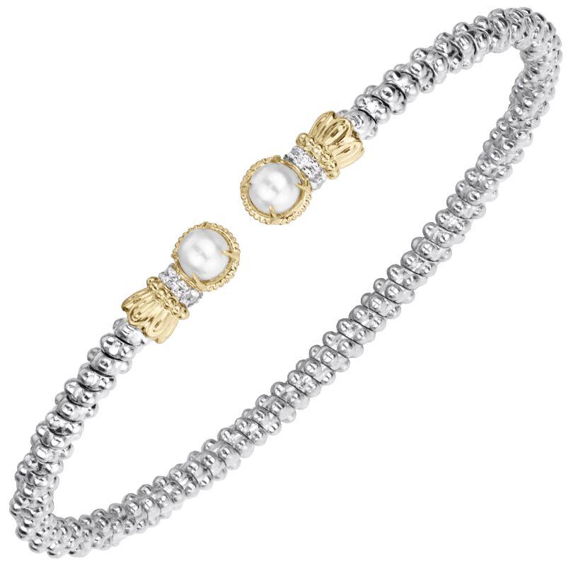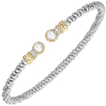 14K Gold and Sterling Silver, Diamond and Pearl Stackable Bracelet | 2MM