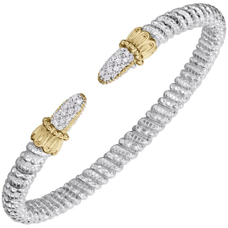 14K Gold and Sterling Silver, Diamond Stackable Cuff Bracelet | 4MM