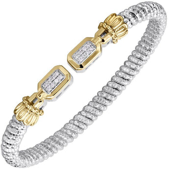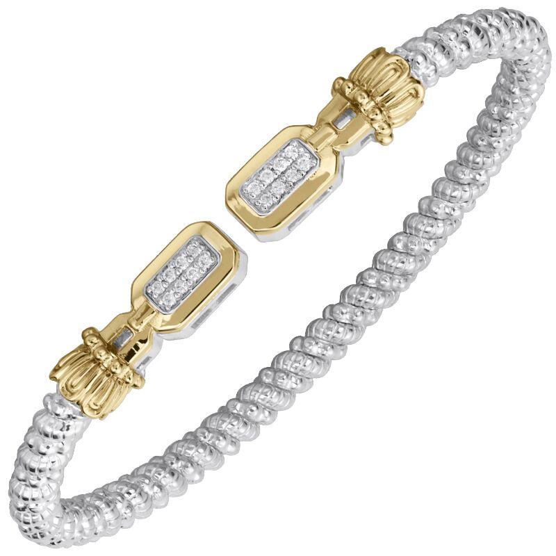14K Gold and Sterling Silver, Diamond Stackable Cuff Bracelet | 4MM