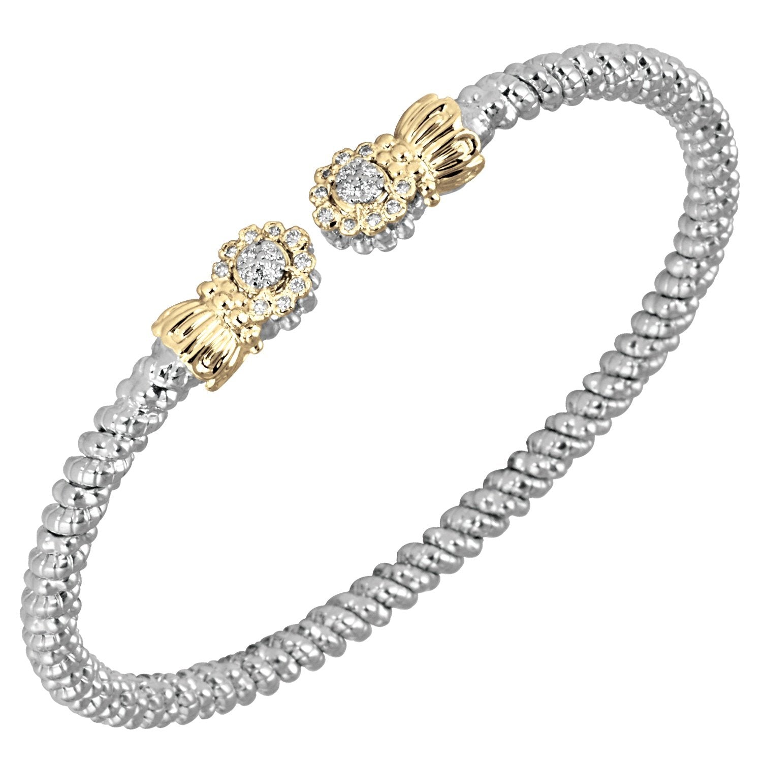 Crafted in 14K gold and sterling silver, our elegant stackable bracelet is designed with an open silhouette. Sparkling diamonds shine brightly, while a Moiré Beaded® pattern makes a richly textured statement. Crown accents complete the look as regal finishing touches.