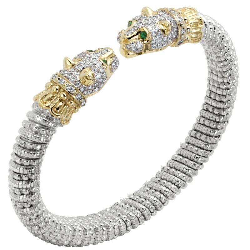 14K Gold and Sterling Silver, Diamond and Tsavorite Garnet Cuff Bracelet | 6MM
