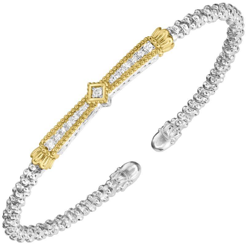 Accented by a Moiré Beaded® pattern and shimmering diamonds set in 14K gold, our elegant 2MM petite stackable bracelet features an open silhouette. Whether paired with other bangles from VAHAN's collection or worn as a standalone piece, it enhances any look.