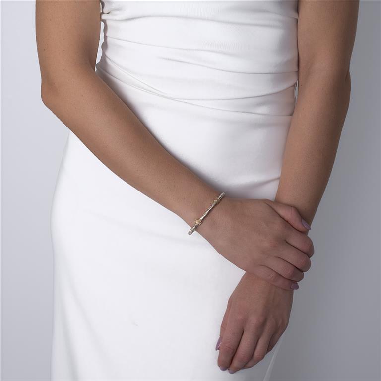 14K Gold and Sterling Silver, Diamond Stackable Bracelet | 3MM