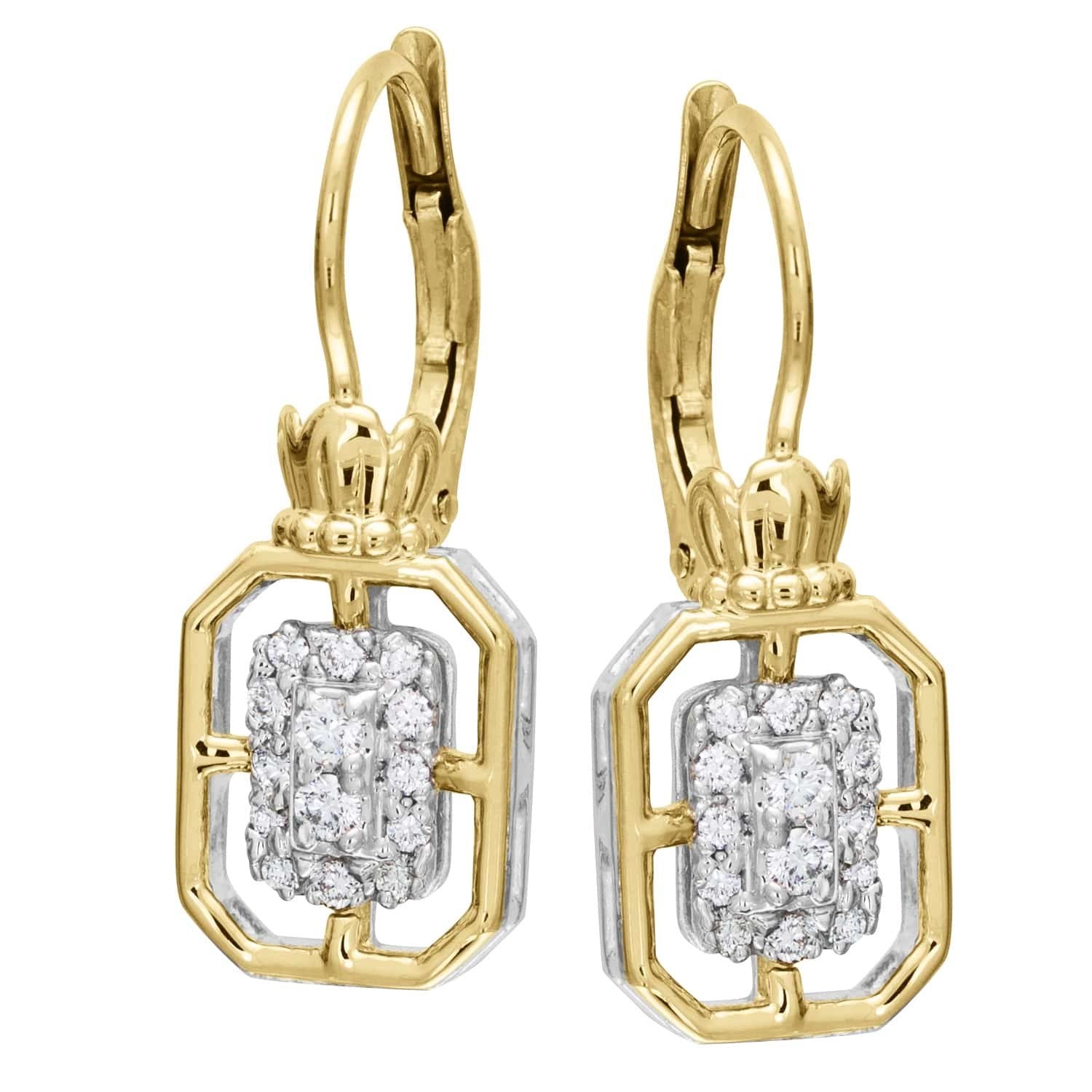 14K Gold and Sterling Silver, Diamond Drop Earrings