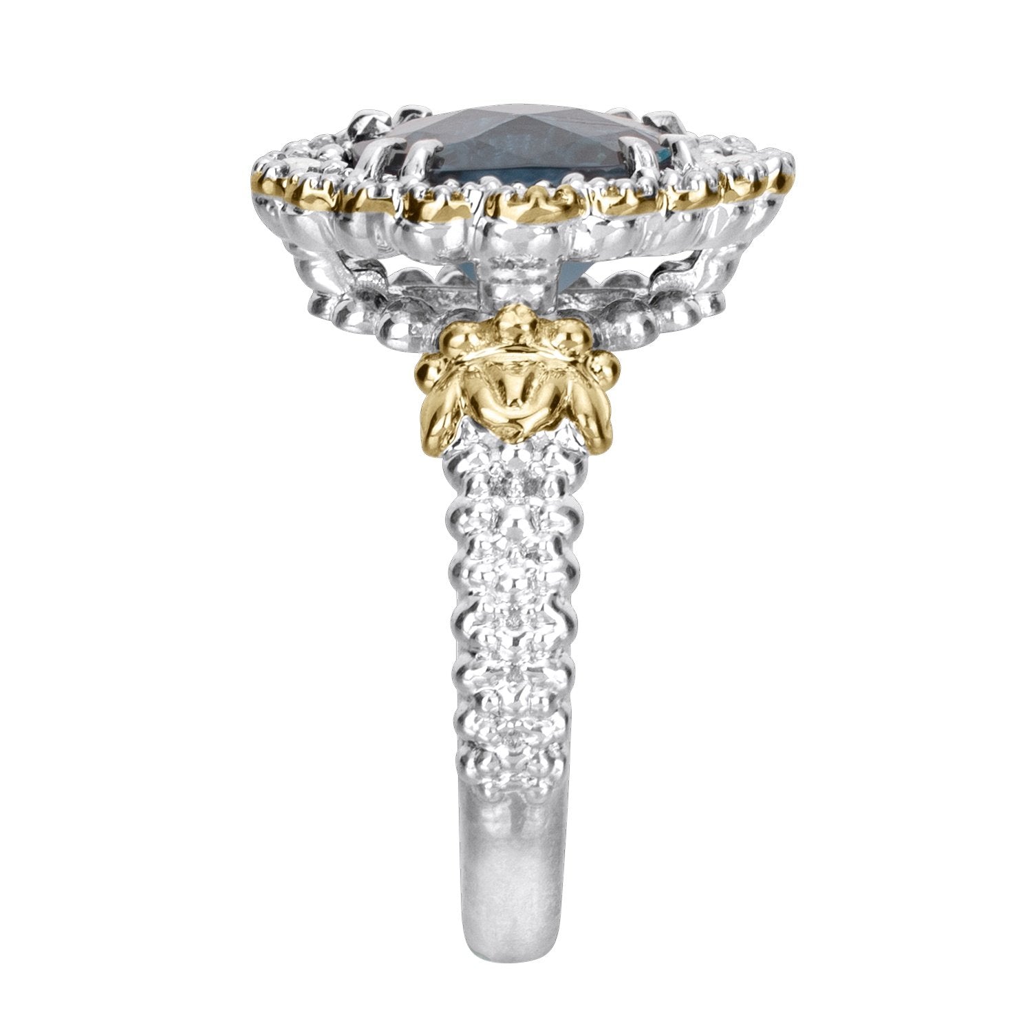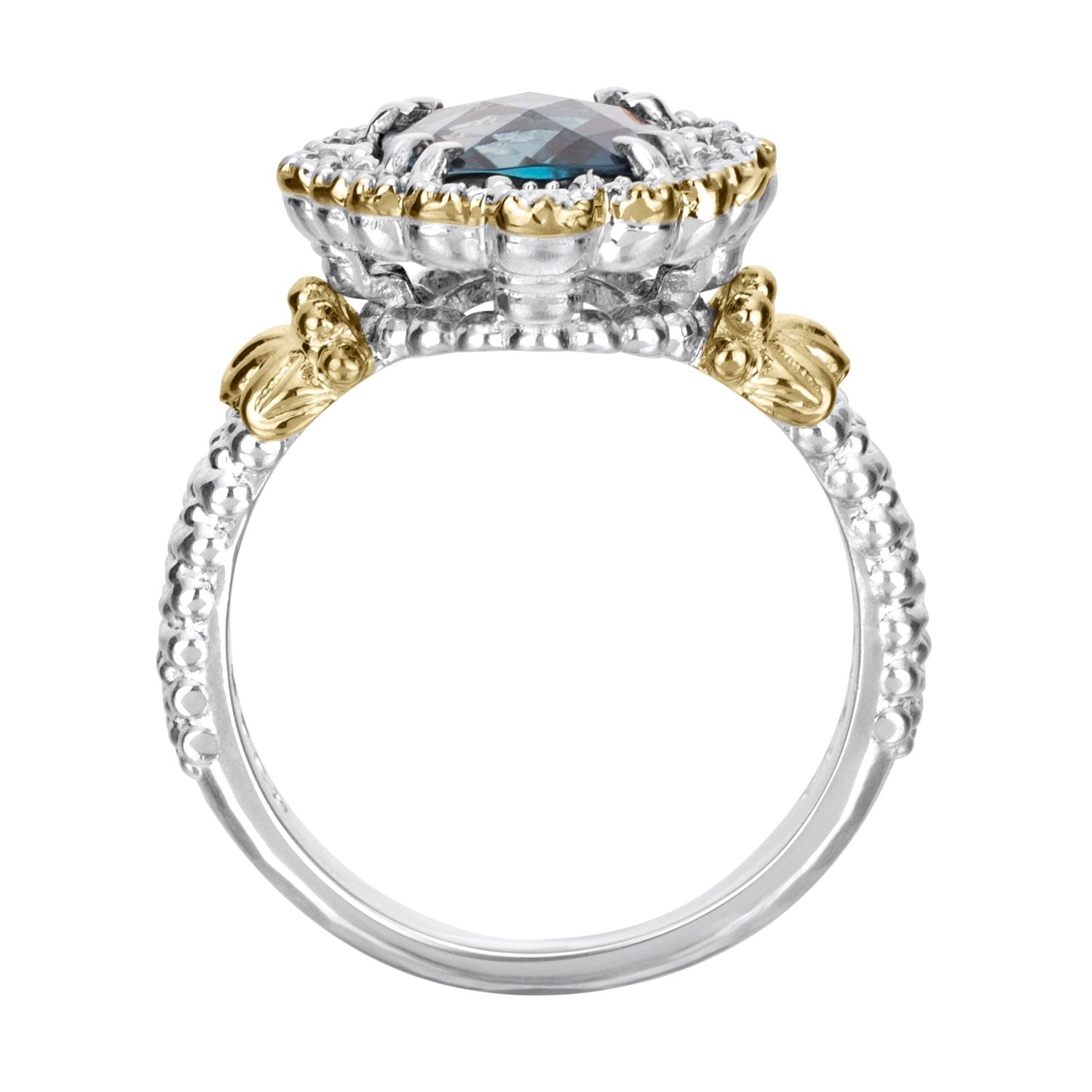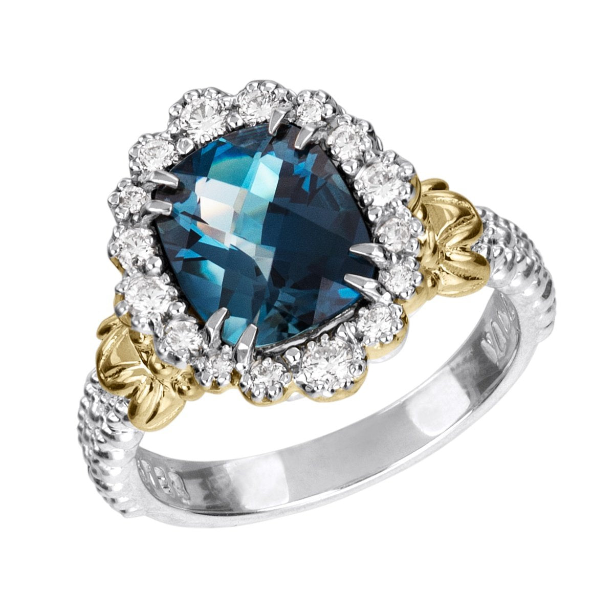 14K Gold and Sterling Silver, London Blue Topaz and Diamond Ring