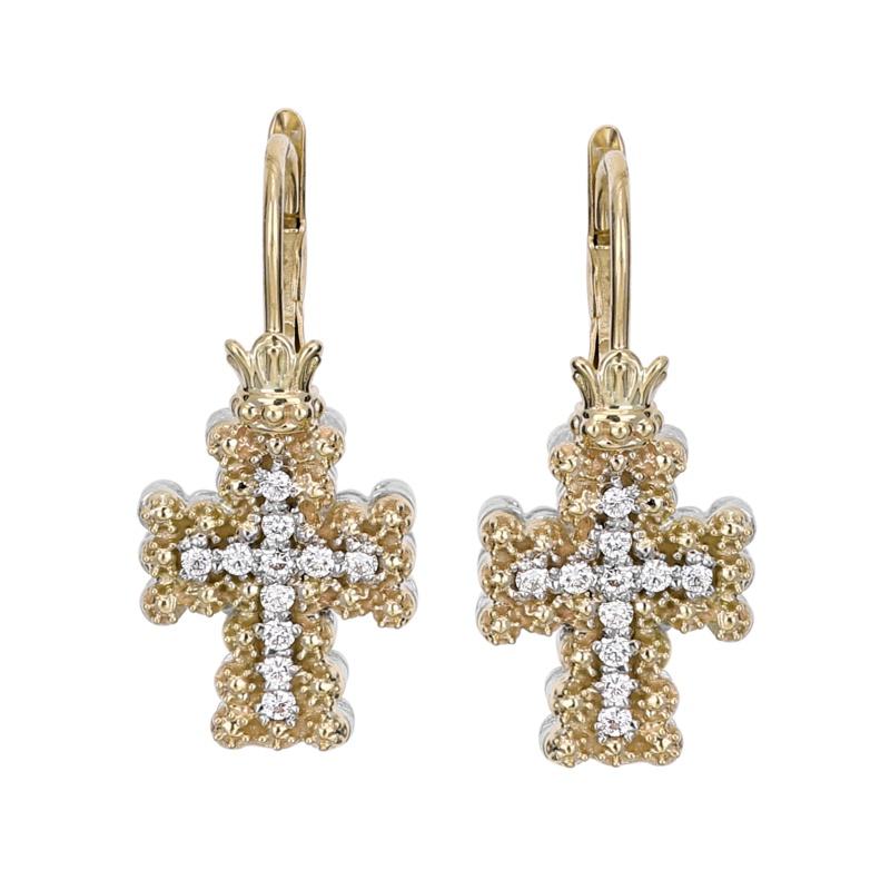 14K Gold and Sterling Silver, Diamond Cross Drop Earrings