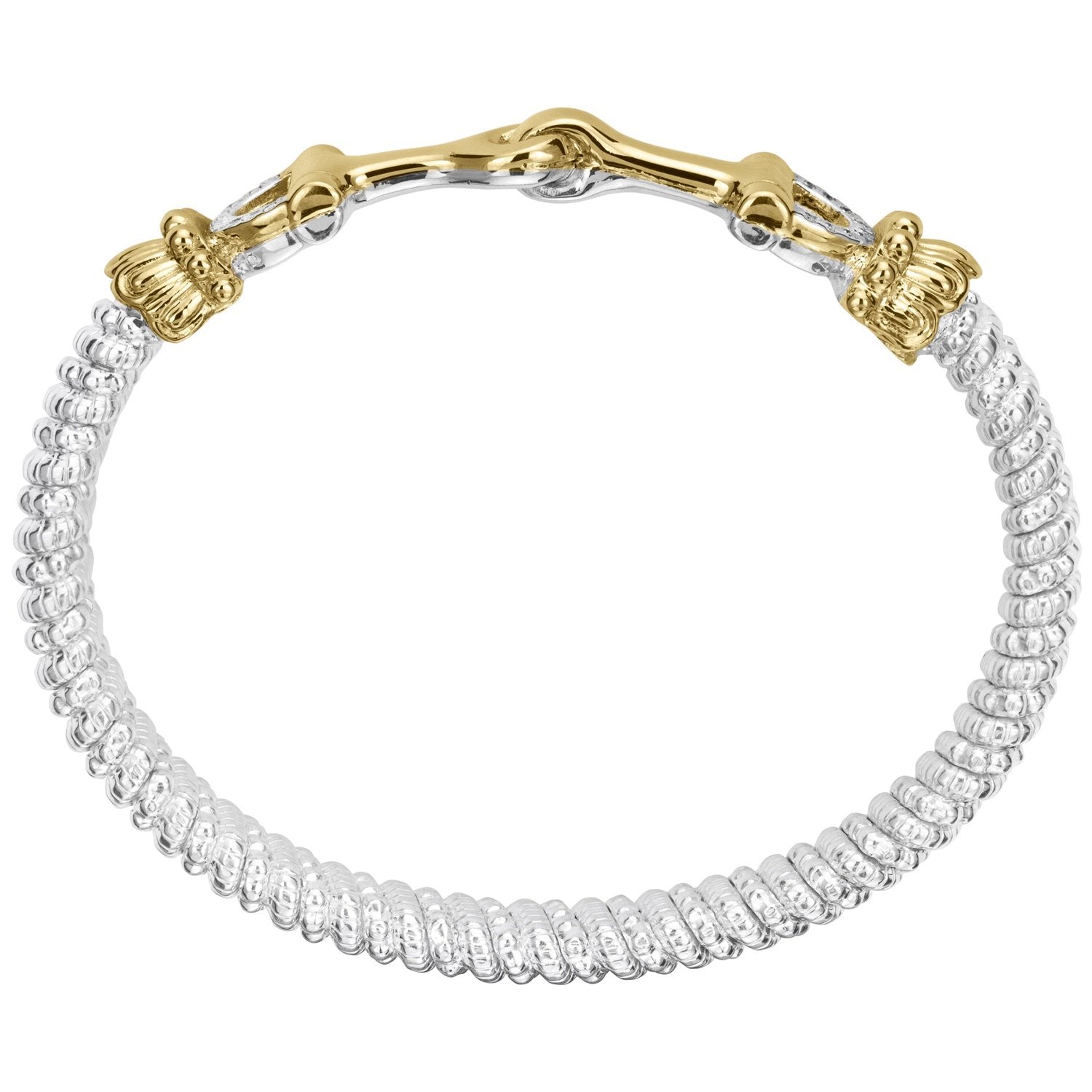 14K Gold and Sterling Silver, Diamond Horsebit Stackable Bracelet | 6MM