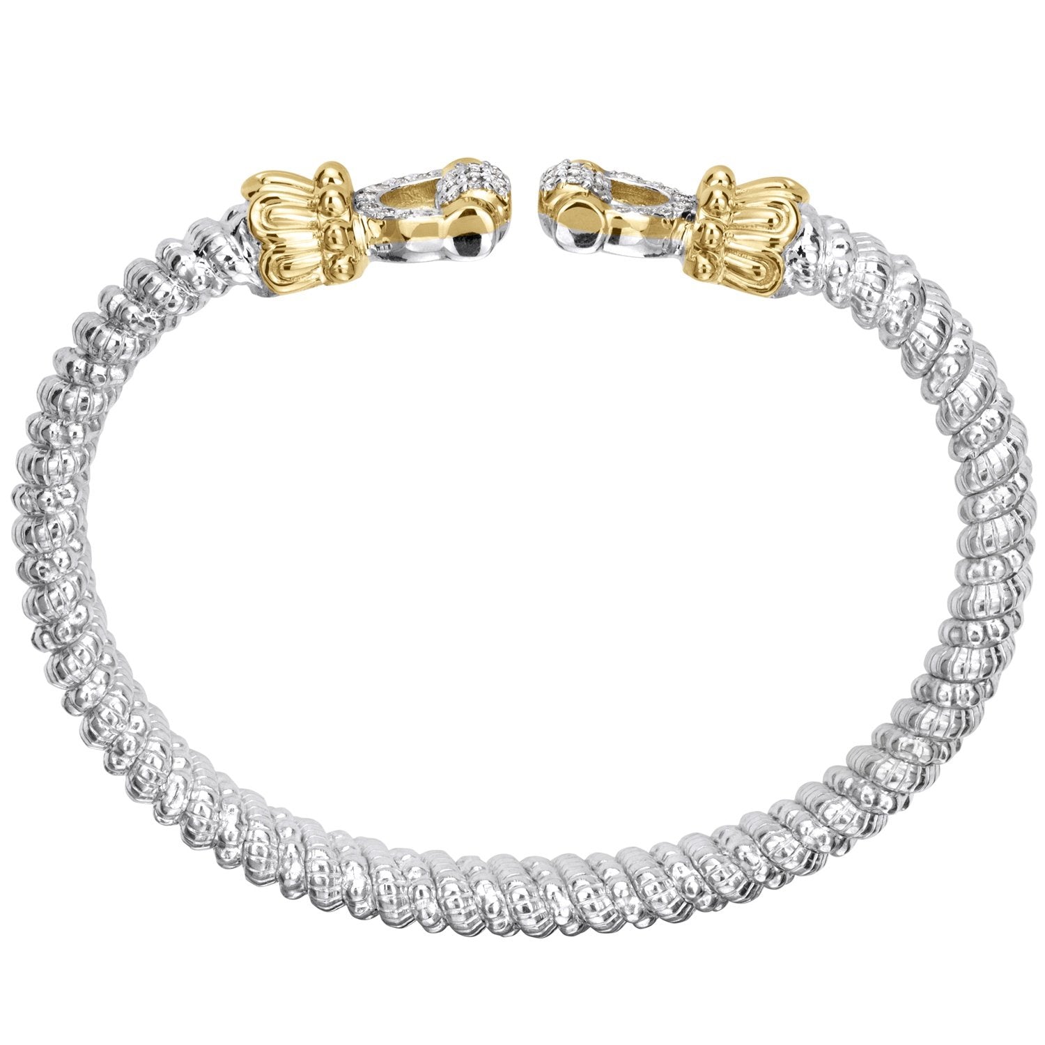 14K Gold and Sterling Silver, Diamond Horsebit Stackable Bracelet | 6MM
