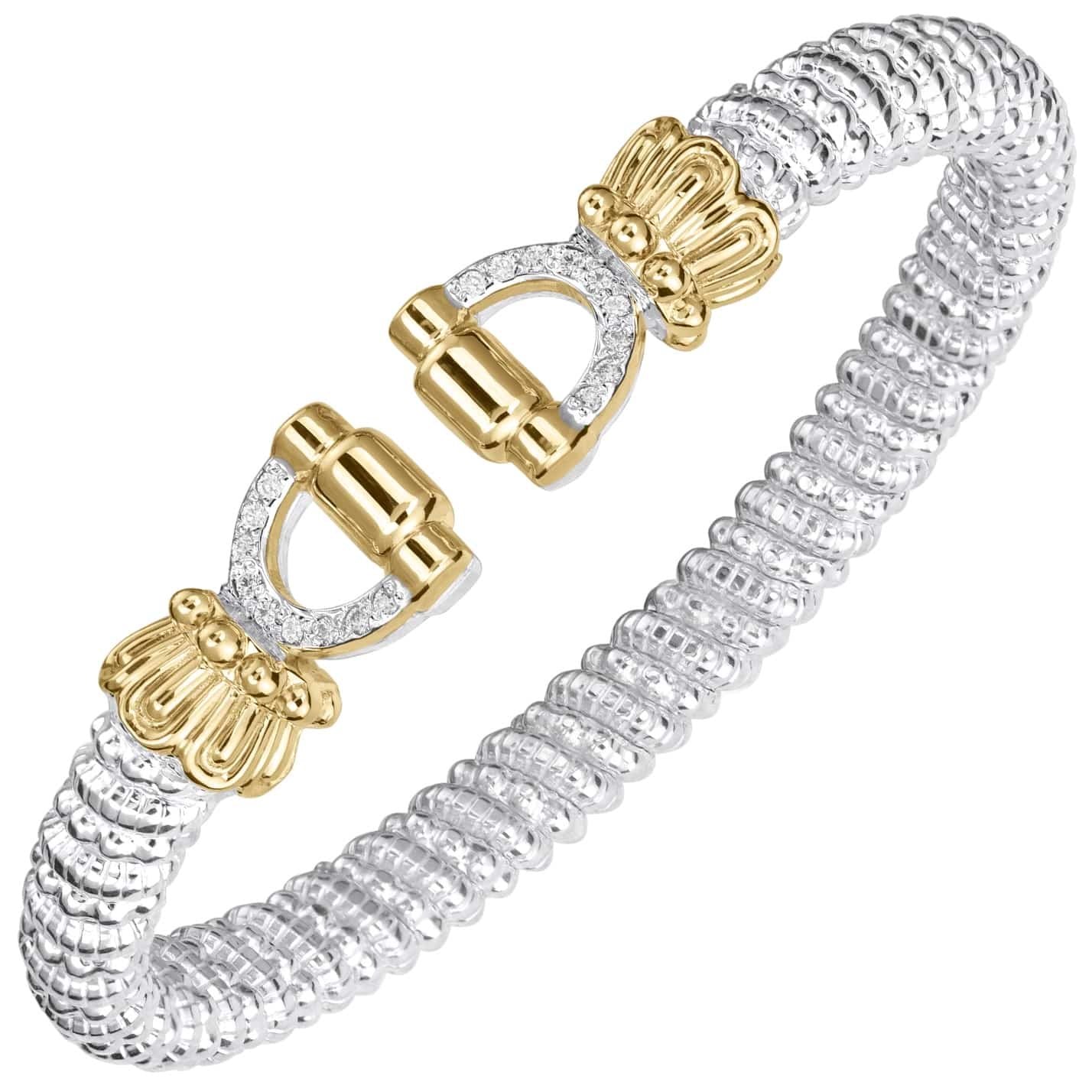 14K Gold and Sterling Silver, Diamond Horsebit Stackable Bracelet | 6MM