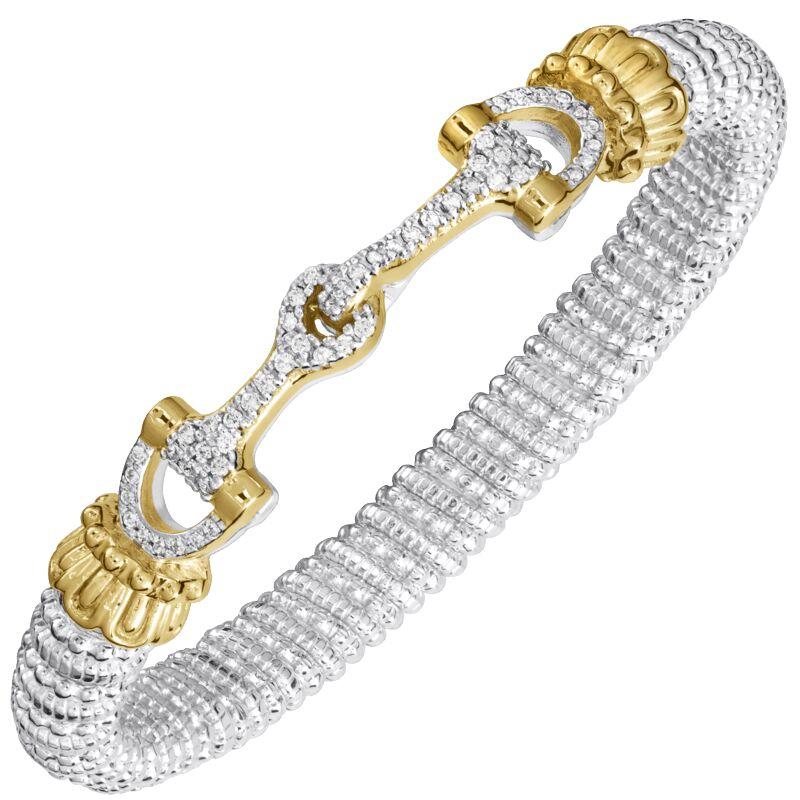 14K Gold and Sterling Silver, Diamond Horsebit Stackable Bracelet | 8MM