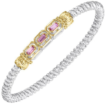 14K Gold and Sterling Silver, Pink Topaz and Diamond Stackable Bracelet | 3MM