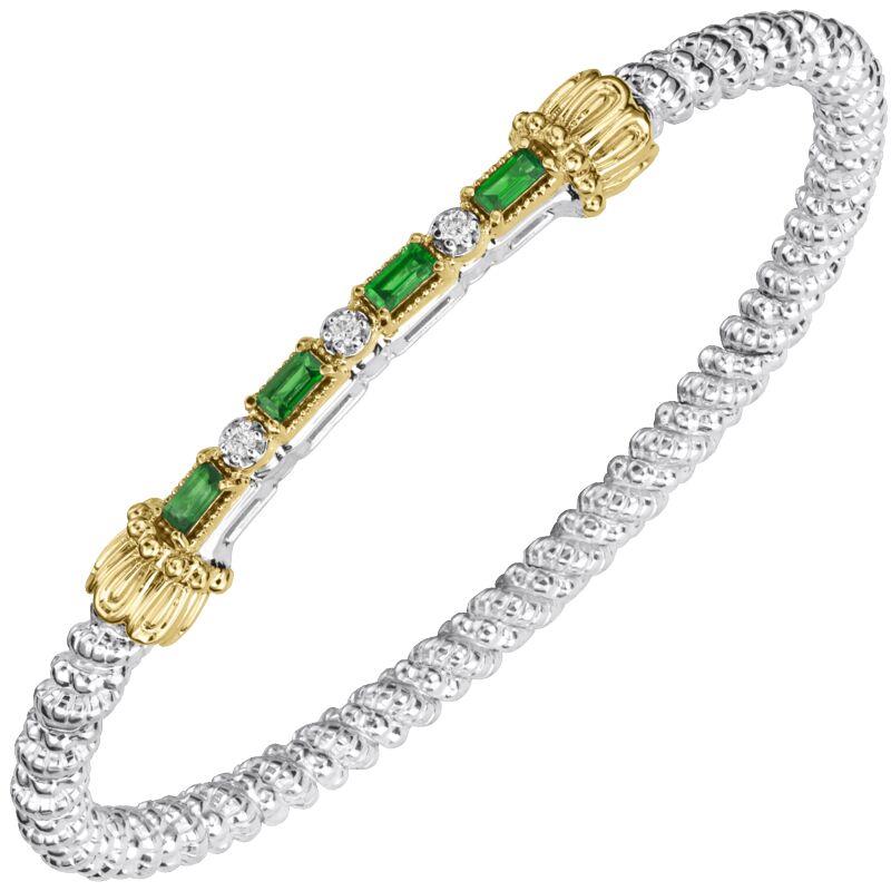 Radiant Tsavorite Garnet stones infuse our stackable bangle bracelet with rich, captivating color. Crafted in 14K gold and sterling silver, it sparkles with dazzling diamonds for a look of timeless sophistication.