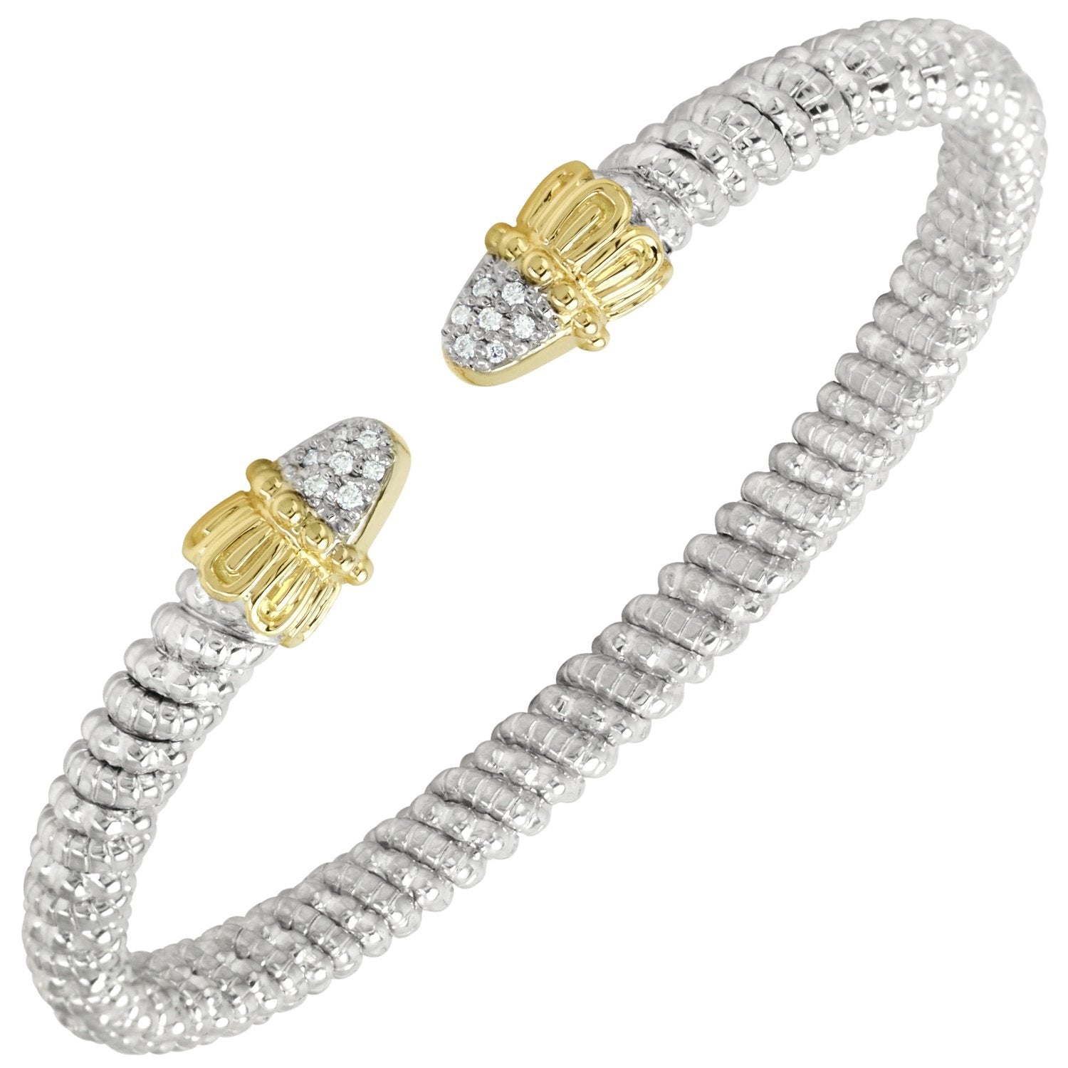 Diamonds, 14K gold and sterling silver blend beautifully on our cuff stackable bracelet, featuring a Moiré Beaded® pattern. Pairs perfectly with additional VAHAN styles for a striking stacked look.