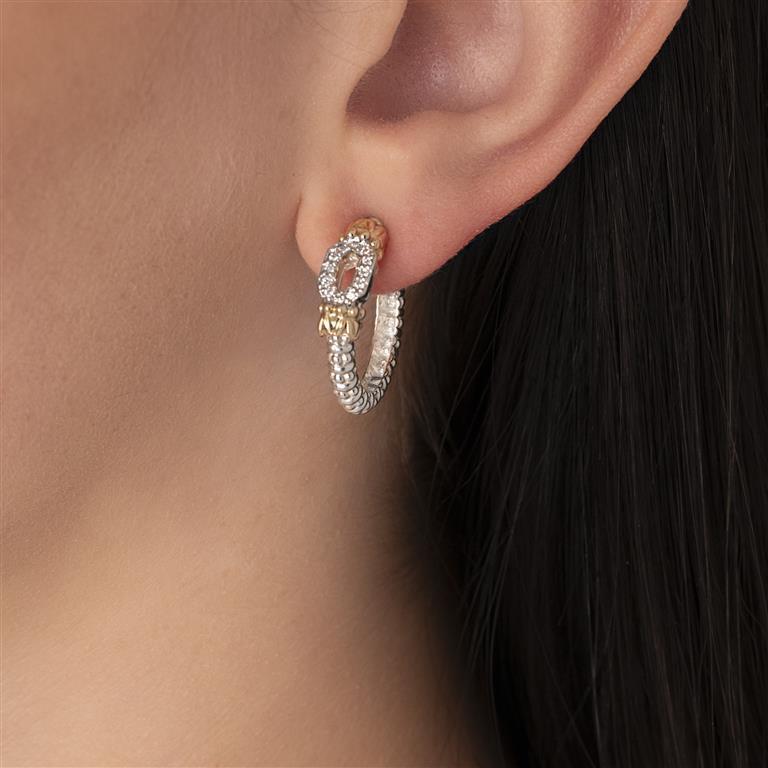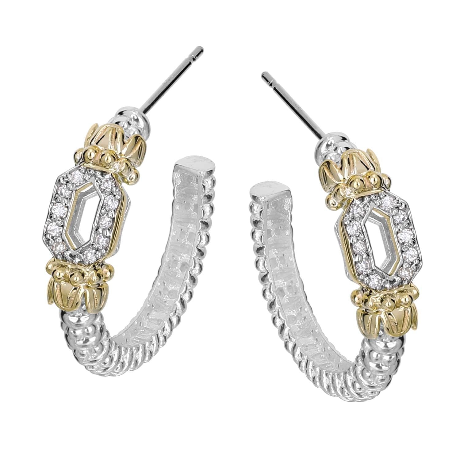14K Gold and Sterling Silver, Diamond Hoop Earrings
