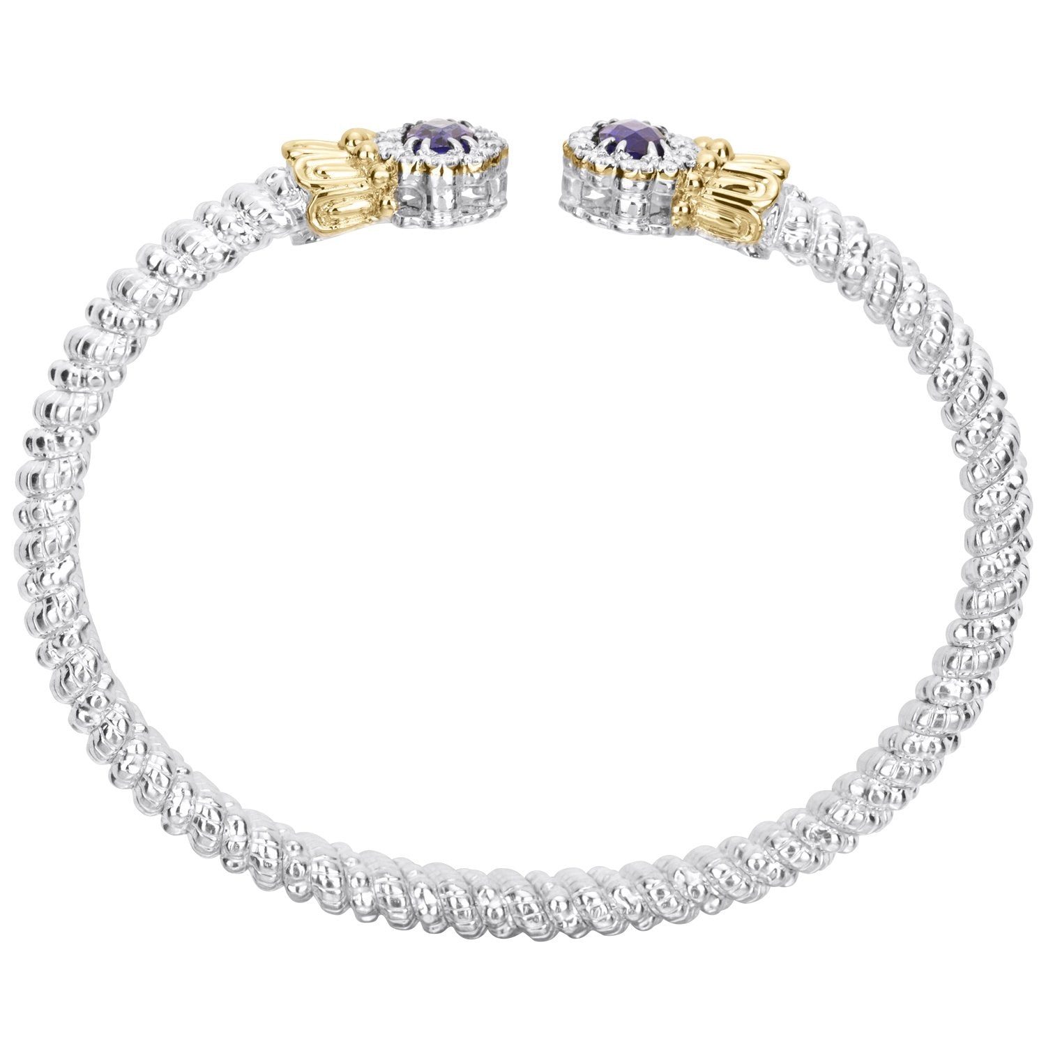 14K Gold and Sterling Silver, Amethyst and Diamond Stackable Bracelet | 4MM