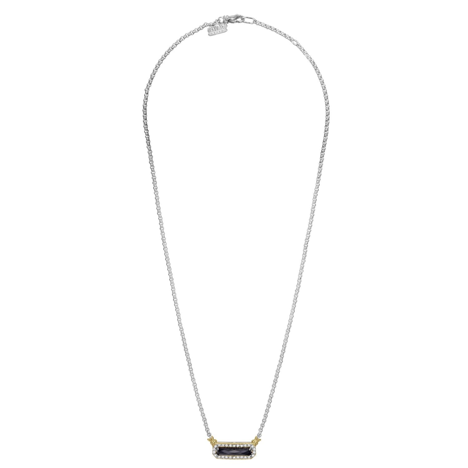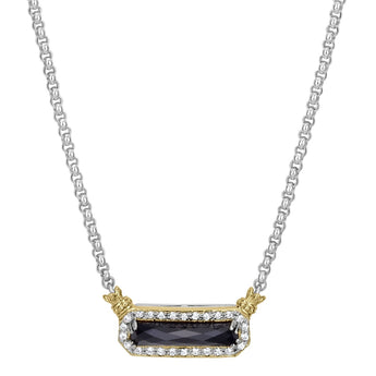 14K Gold and Sterling Silver, Black Onyx Bar and Diamond Necklace