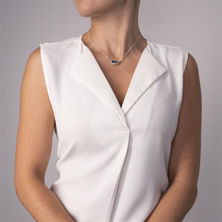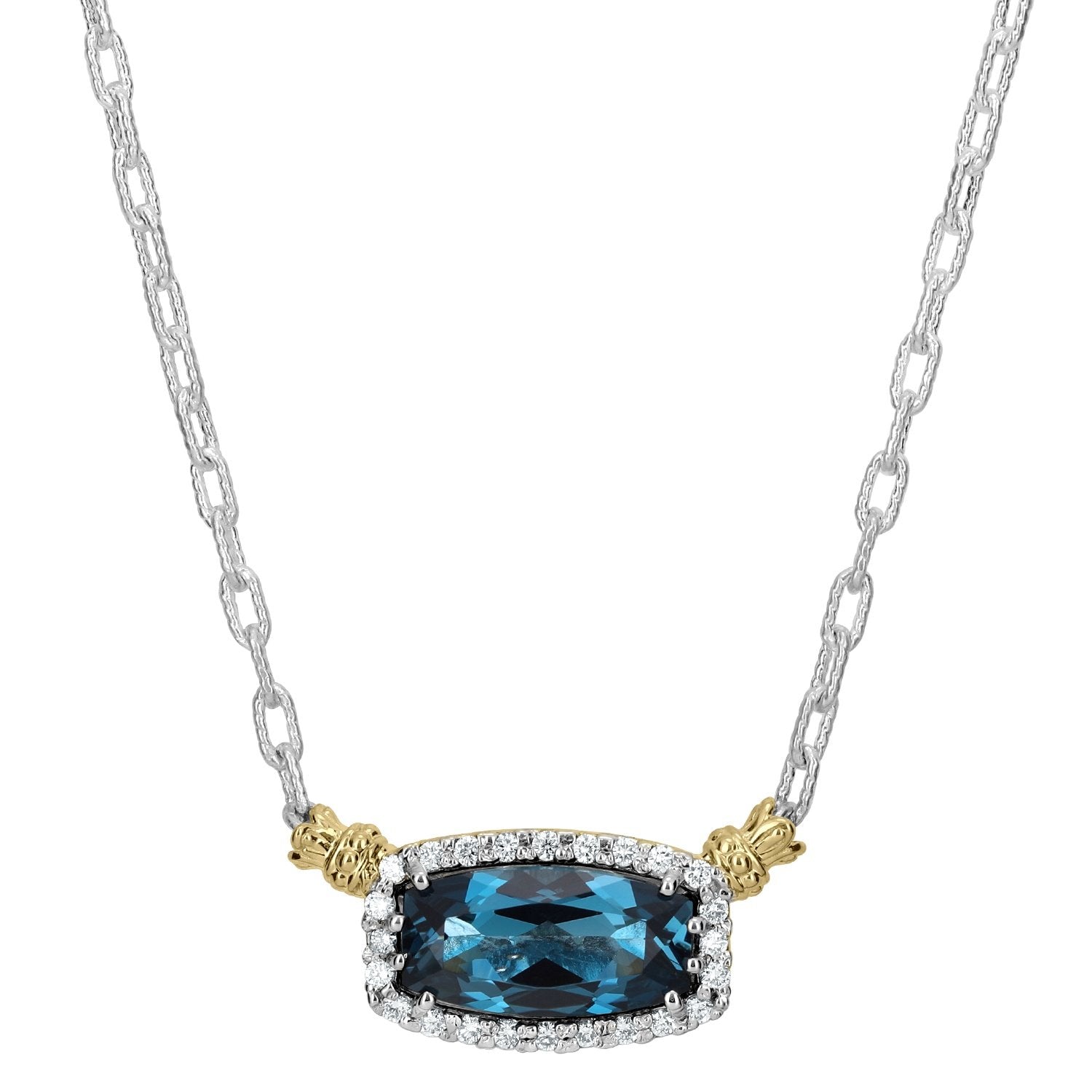 14K Gold and Sterling Silver, Diamond and London Blue Topaz Necklace