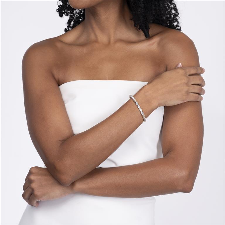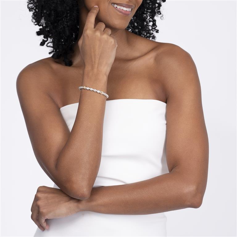14K Gold and Sterling Silver, Diamond Stackable Bracelet | 4MM