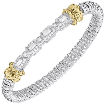 14K Gold and Sterling Silver, Diamond Stackable Bracelet | 6MM