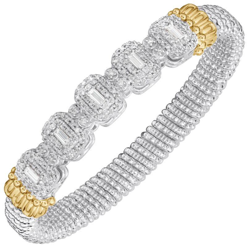 14K Gold and Sterling Silver, Diamond Stackable Bracelet | 8MM