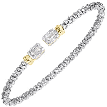 Embodying refined elegance, our exquisite 2MM petite bracelet features an open silhouette that highlights a mesmerizing Moiré Beaded® pattern and radiant diamonds set in luxurious 14K gold. This captivating piece is perfect for layering with other bangles from VAHAN's collection, adding a touch of sophistication to any ensemble.