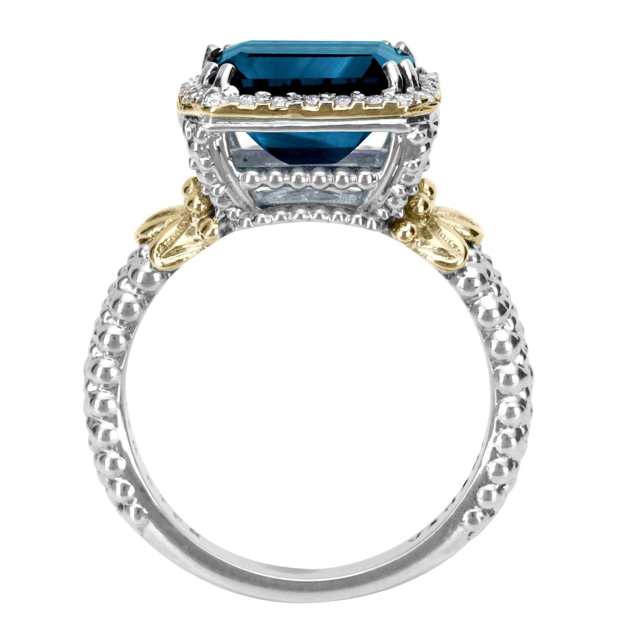 14K Gold and Sterling Silver, London Blue Topaz and Diamond Ring