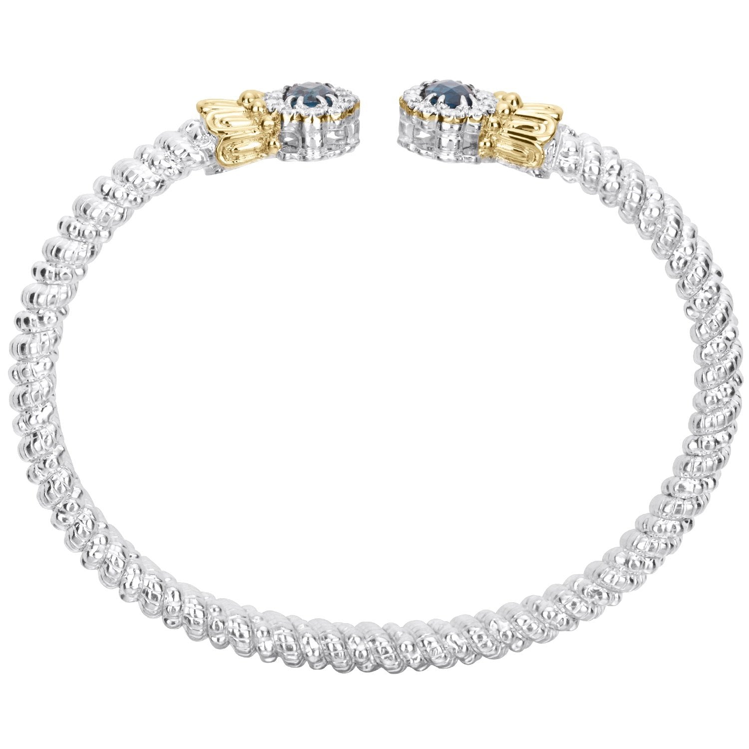 14K Gold and Sterling Silver, London Blue Topaz and Diamond Stackable Bracelet | 4MM