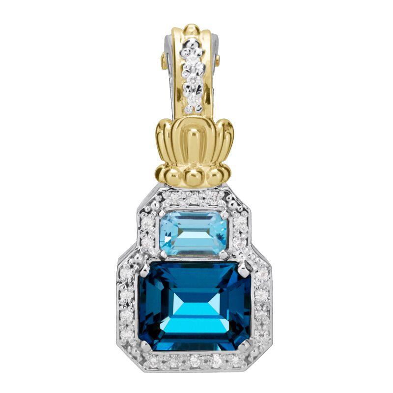 14K Gold and Sterling Silver, London Blue Topaz, Sky Blue Topaz and Diamond Pendant