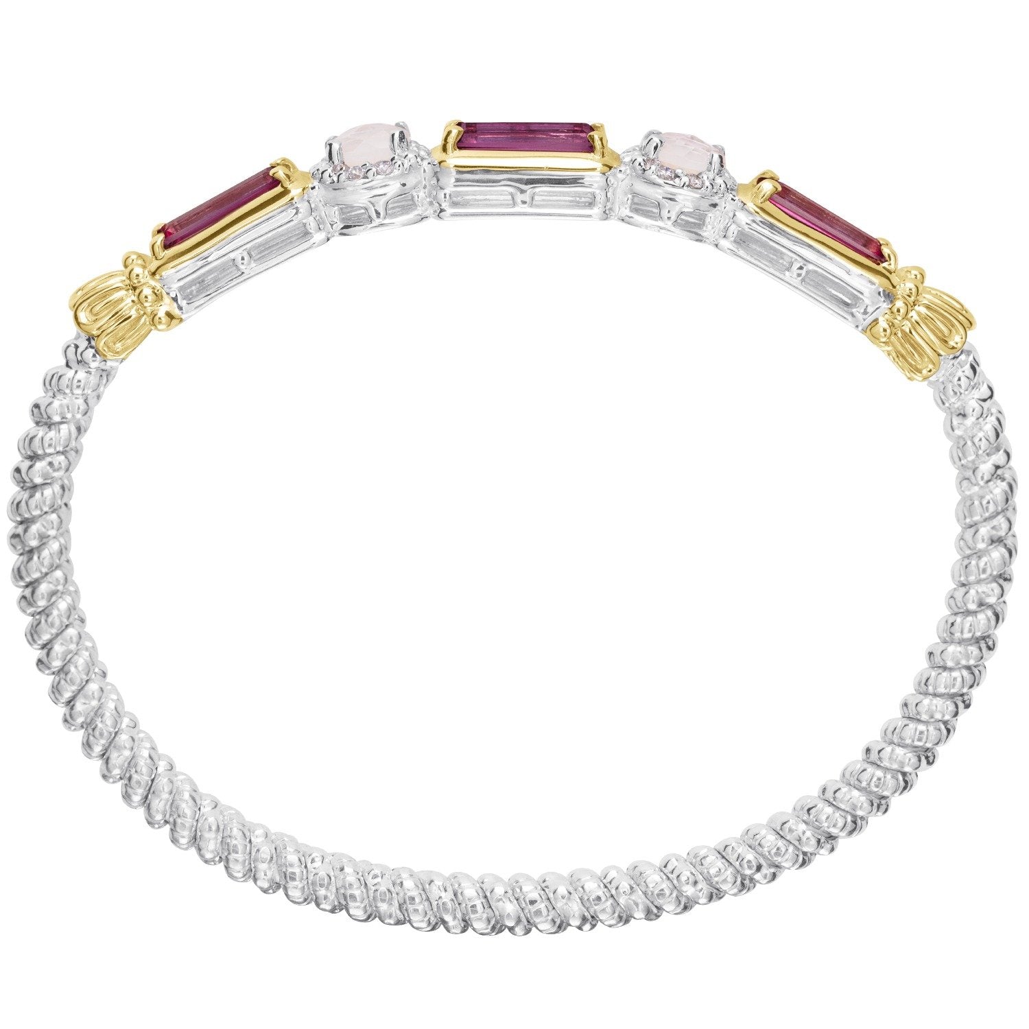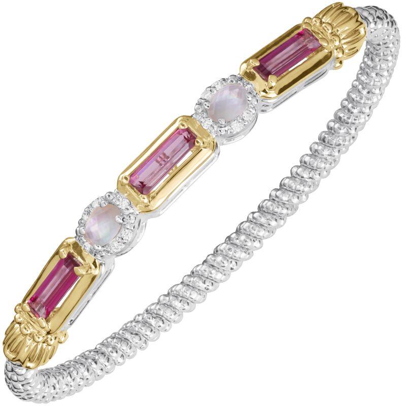 14K Gold and Sterling Silver, Mother of Pearl, Pink Topaz and Diamond Stackable Bracelet | 3MM