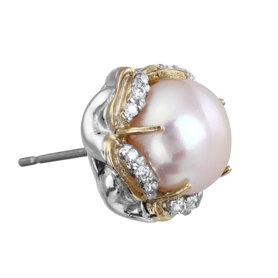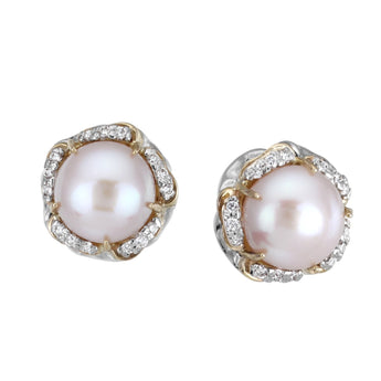 14K Gold and Sterling Silver, Diamond and Pearl Earrings
