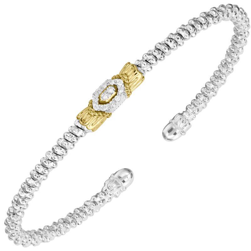 14K Gold and Sterling Silver, Diamond Stackable Bracelet | 2MM