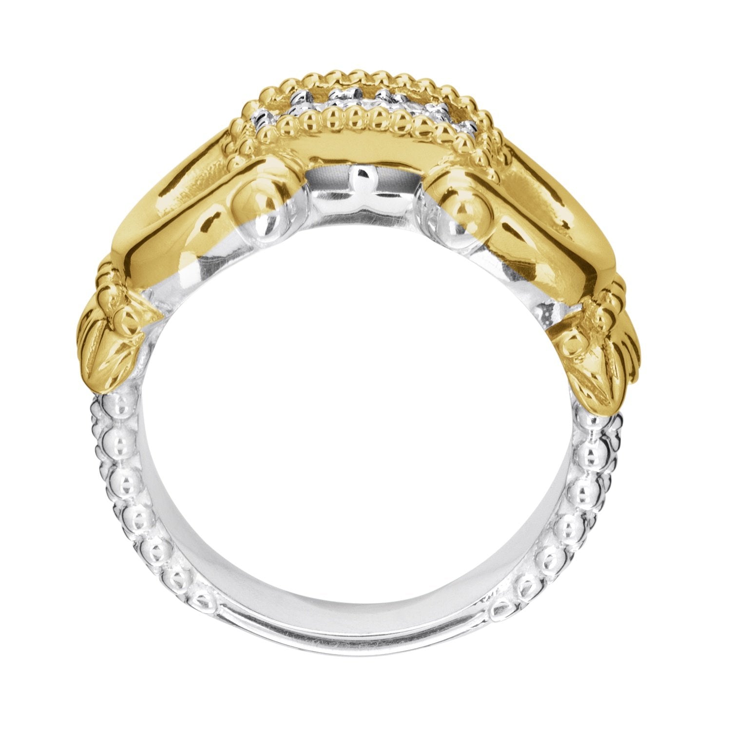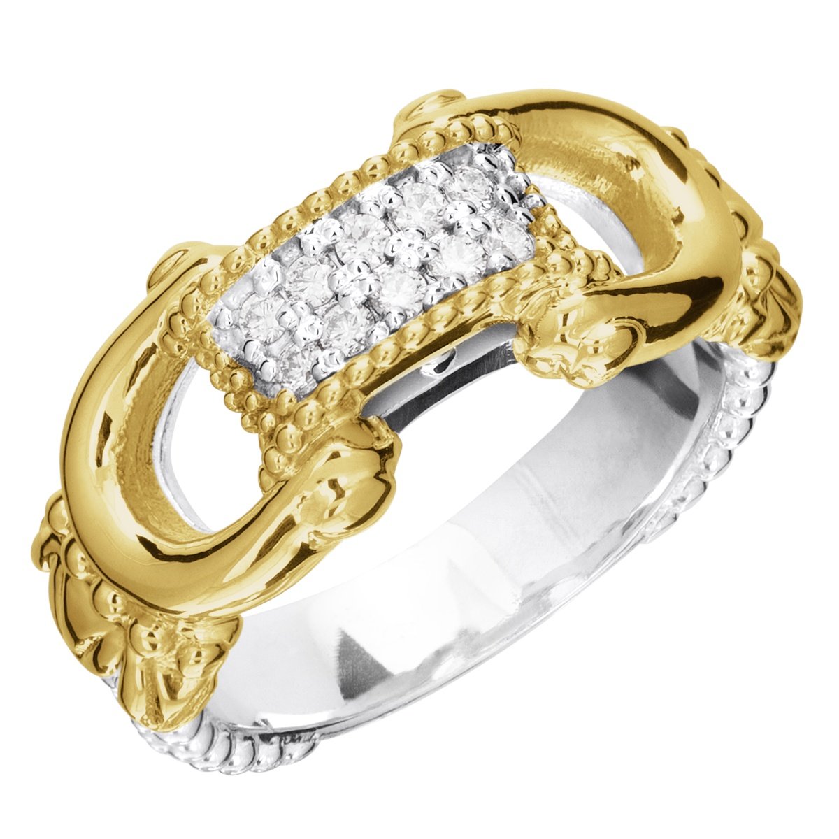 14K Gold and Sterling Silver, Equine-Inspired Diamond Horse Bit Ring