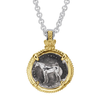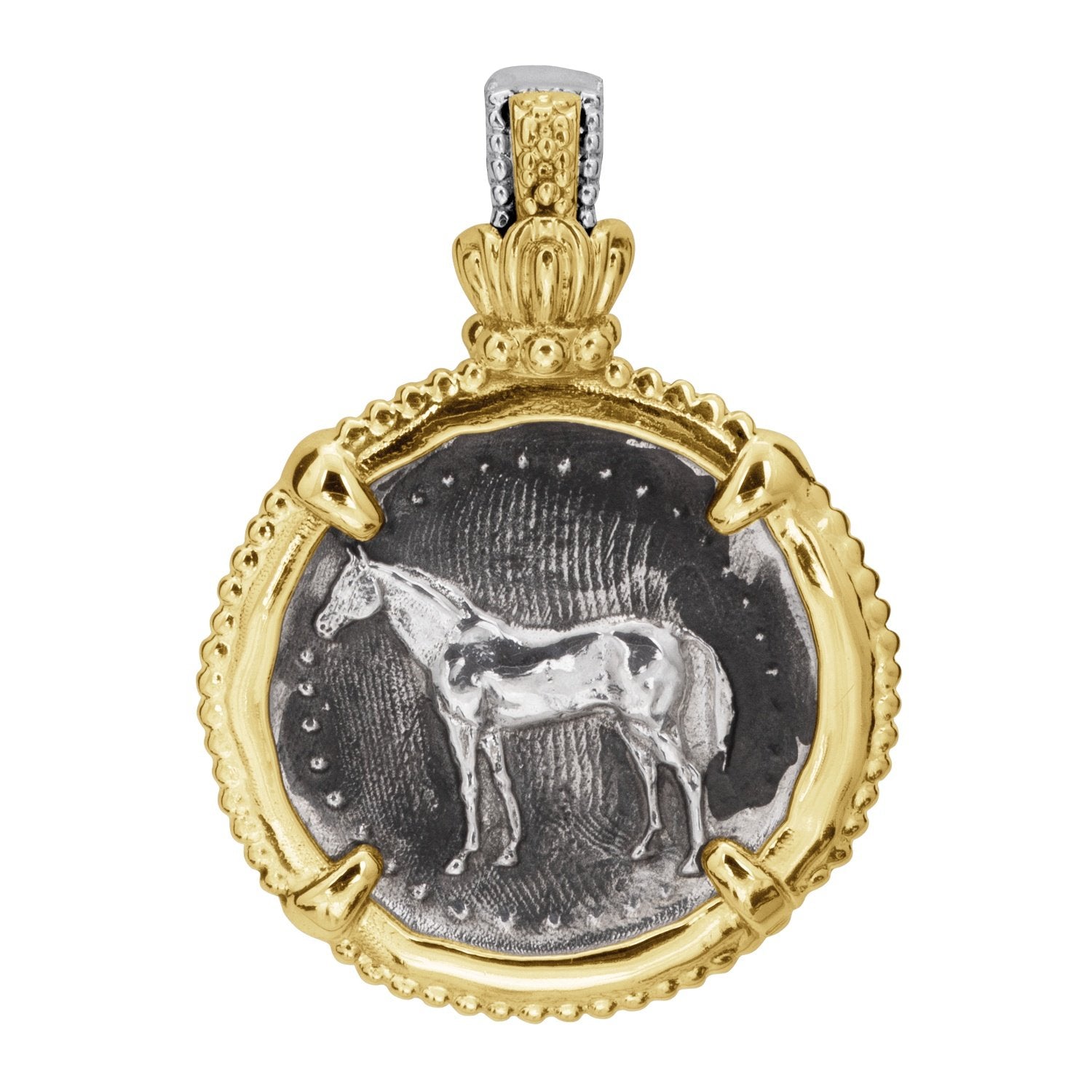 14K Gold and Sterling Silver, Horse Coin Pendant