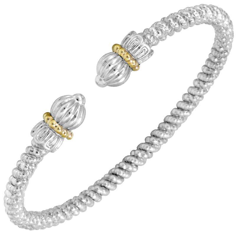 Our stackable bracelet showcases an exquisite open silhouette in 14K gold and sterling silver. The Moiré Beaded® pattern adds a touch of luxury, making it the perfect addition to elevate any look.