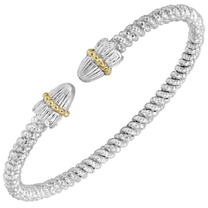 Our stackable bracelet showcases an exquisite open silhouette in 14K gold and sterling silver. The Moiré Beaded® pattern adds a touch of luxury, making it the perfect addition to elevate any look.