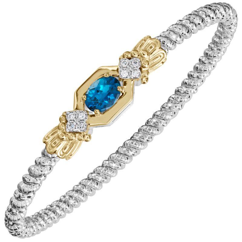 14K Gold and Sterling Silver, London Blue Topaz and Diamond Stackable Bracelet | 3MM