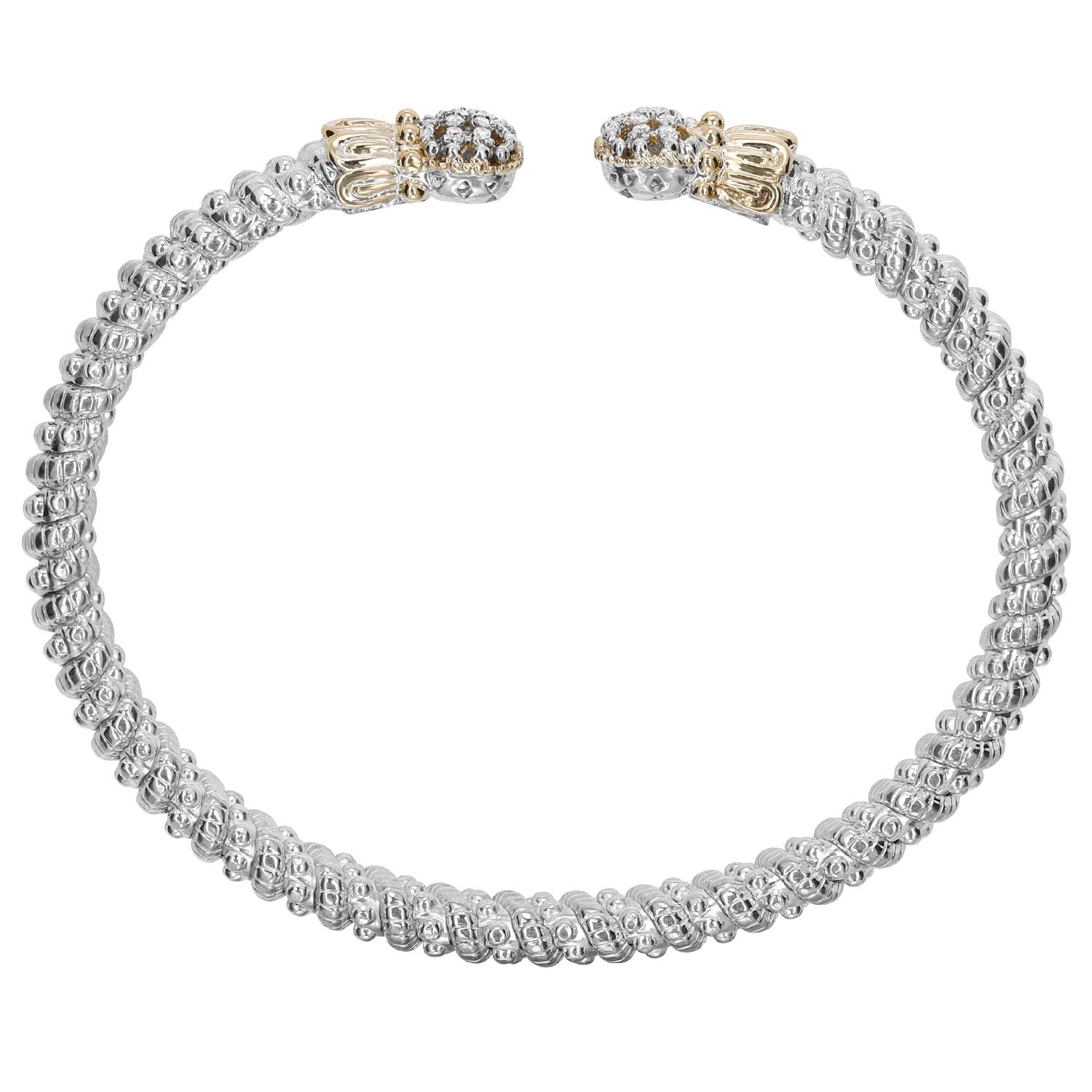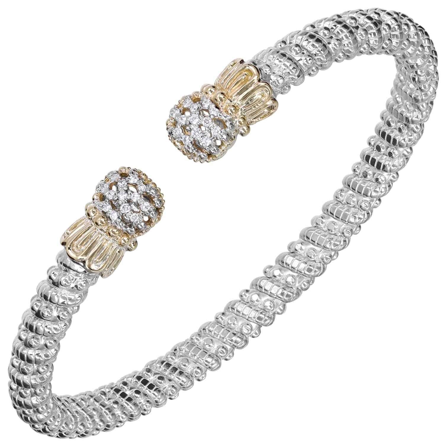 14K Gold and Sterling Silver, Diamond Stackable Cuff Bracelet | 4MM