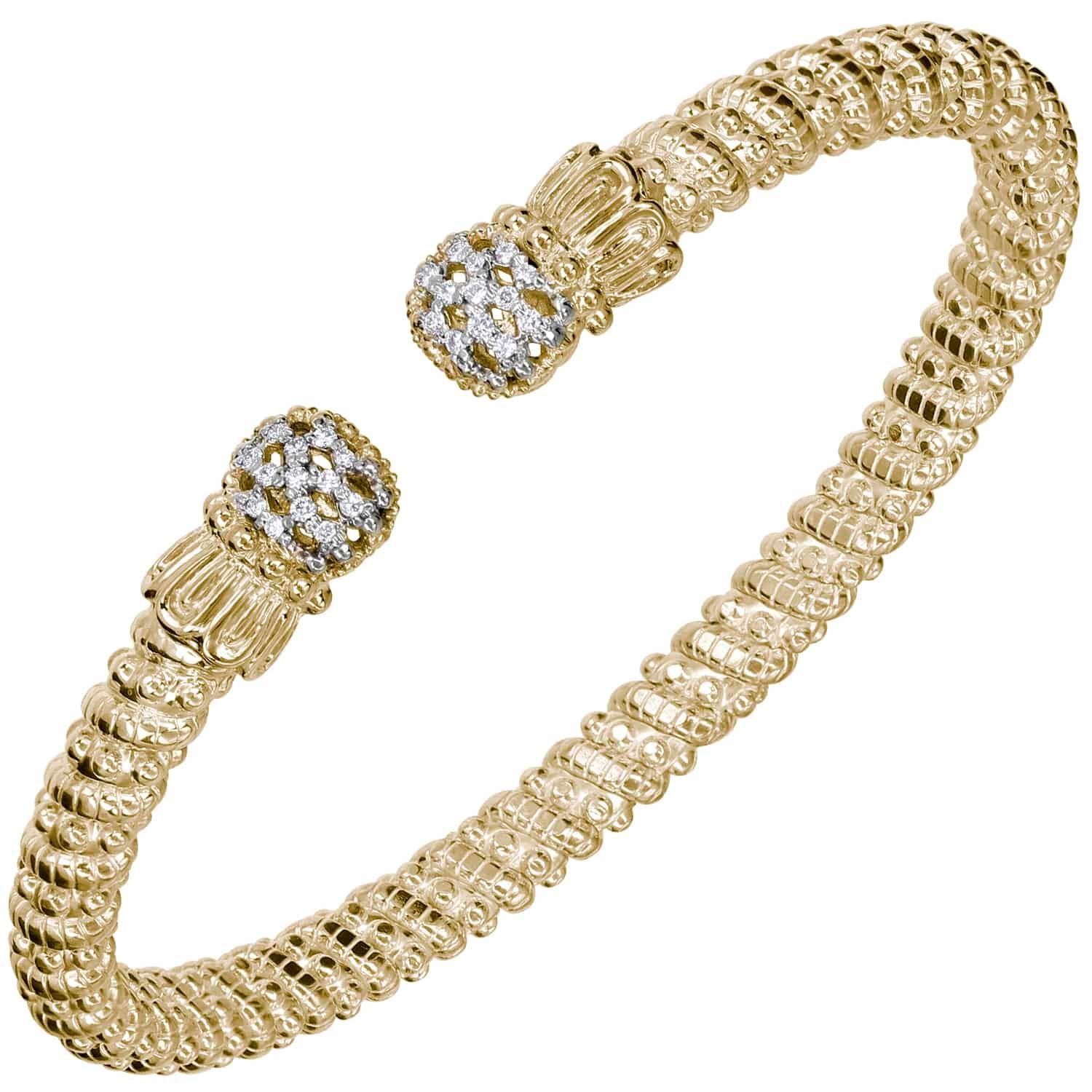 14K Gold, Diamond Stackable Cuff Bracelet | 4MM