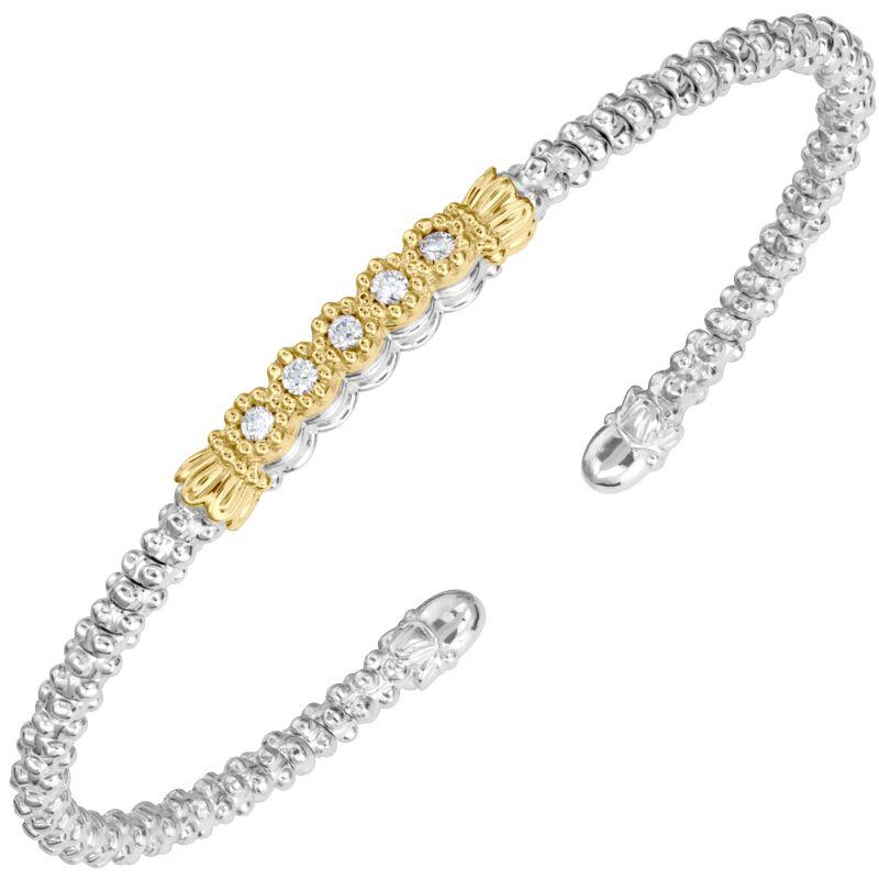 14K Gold and Sterling Silver, Diamond Stackable Bracelet | 2MM