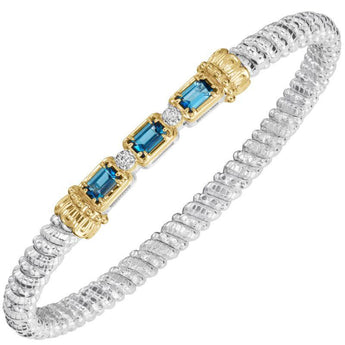 14K Gold and Sterling Silver, London Blue Topaz and Diamond Stackable Bracelet | 4MM