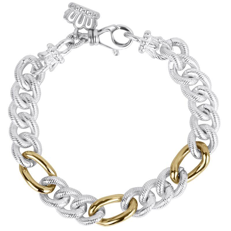 14K Gold and Sterling Silver, Two-Tone Link Chain Bracelet