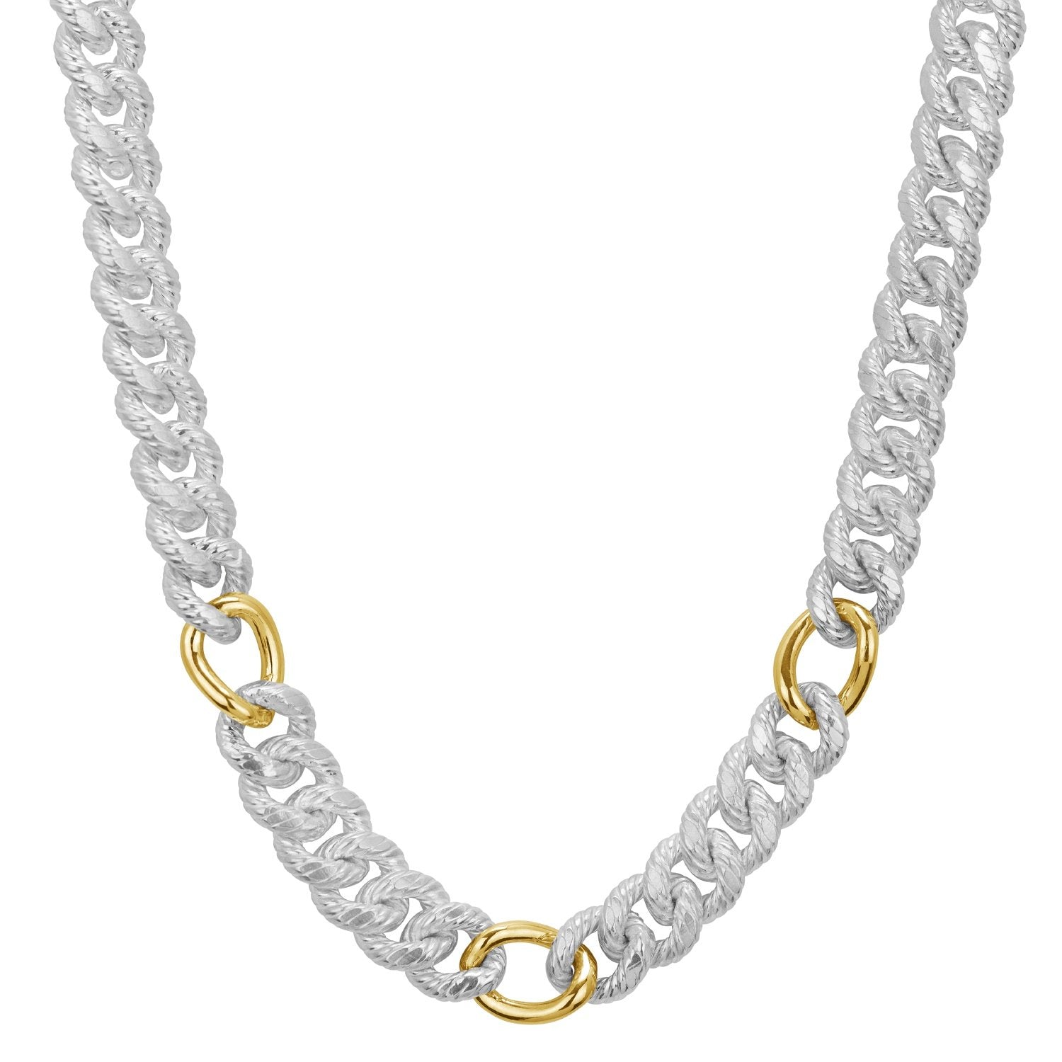 14K Gold and Sterling Silver, Two-Tone Statement Chain Necklace