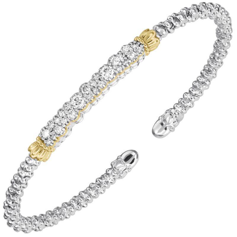 14K Gold and Sterling Silver, Multi-Pavé Diamond Stackable Bracelet | 2MM
